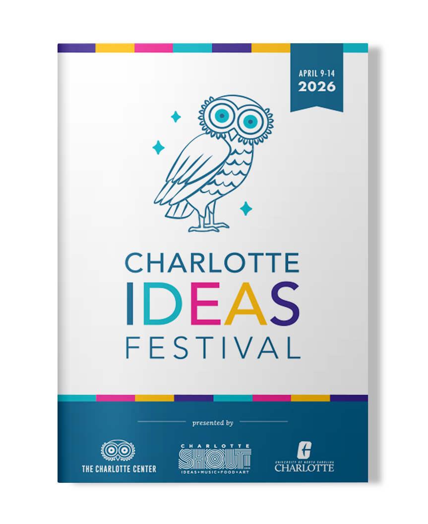 The Charlotte Ideas Festival returns this spring for four days of big ideas, bold conversation, and community connection through the lens of the humanities and civic imagination. Building on the energy and inspiration of past festivals — from explorations of artificial intelligence and creativity to deep conversations about culture, community, and the future — we’re thrilled to bring another season of thoughtful programming to Charlotte.